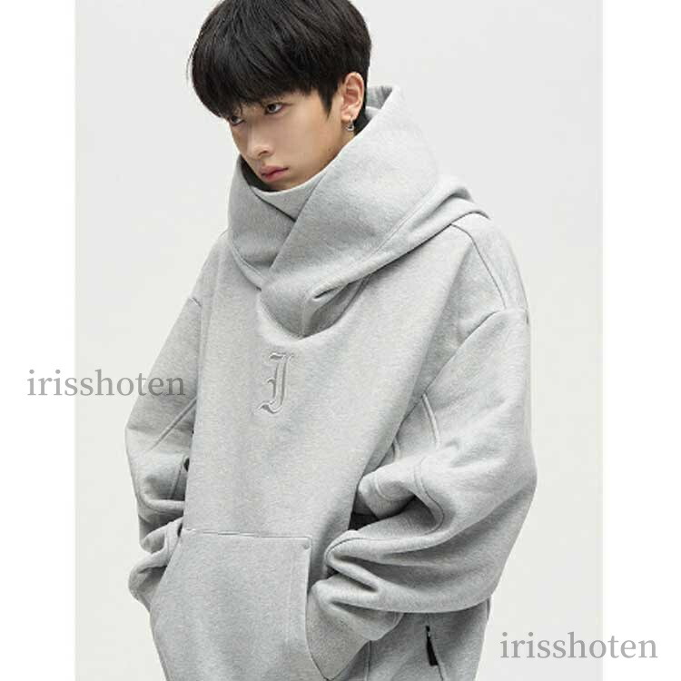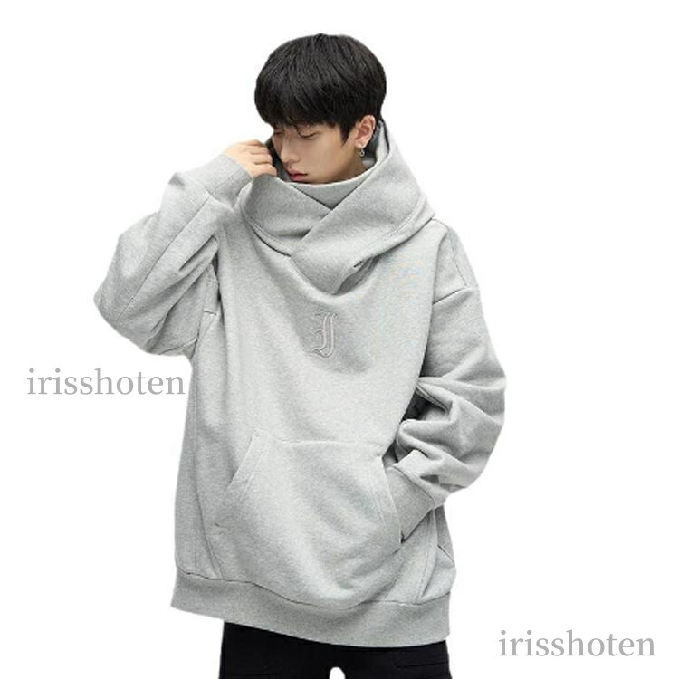 ボリュームネックパーカー メンズ 忍者 メンズファッション 新登場! ブラック ライトグレー M L XL 2XL 3XL
