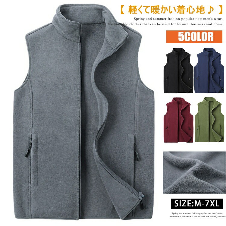 フリース ベスト 起毛 暖かい スタン メンズファッション 豊富な品揃え M L XL 2XL 3XL 4XL 5XL 6XL 7XL オリーブ 黒 ダークブルー ワイン ダークグレー
