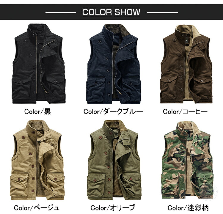 ベスト 防寒ベスト ボアベスト ルーム トップス ベスト ジレ 豊富 M L XL 2XL 3XL 4XL 5XL 6XL 黒 ダークブルー コーヒー ベージュ オリーブ 迷彩柄