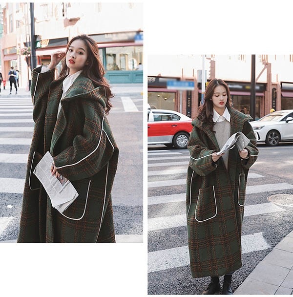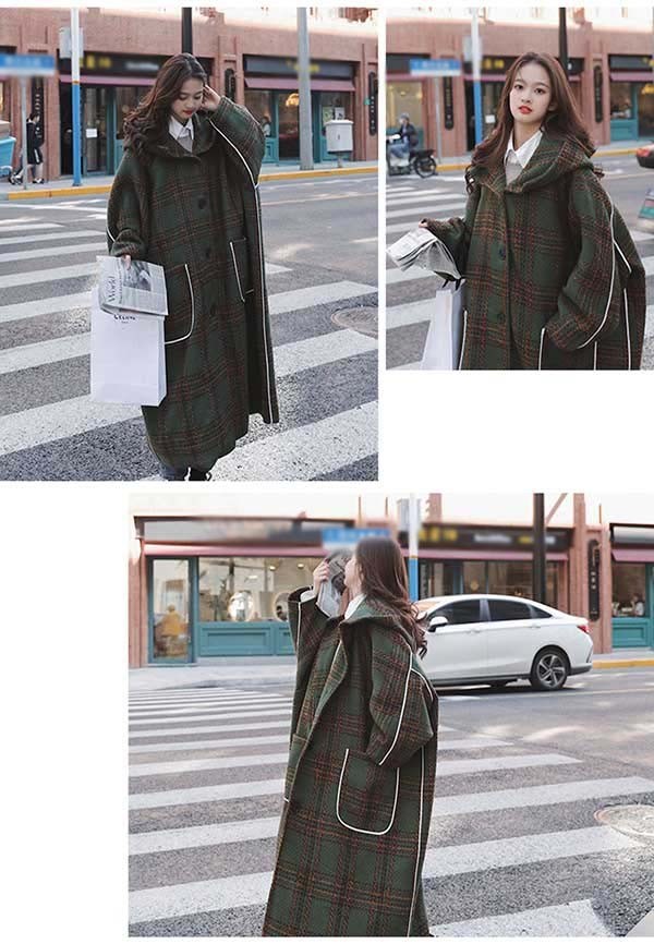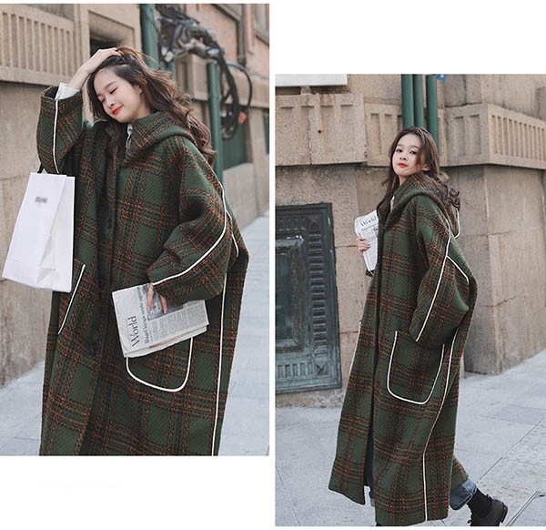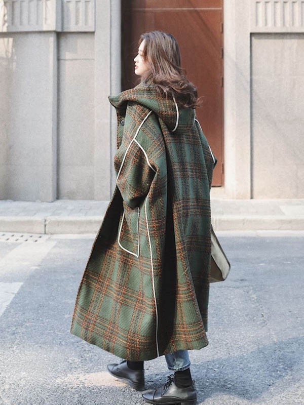 ロングコート フード付き チェック柄 コート ジャケット 豊富 S M L XL グリーン(コットン有り) グリーン(コットン無し)