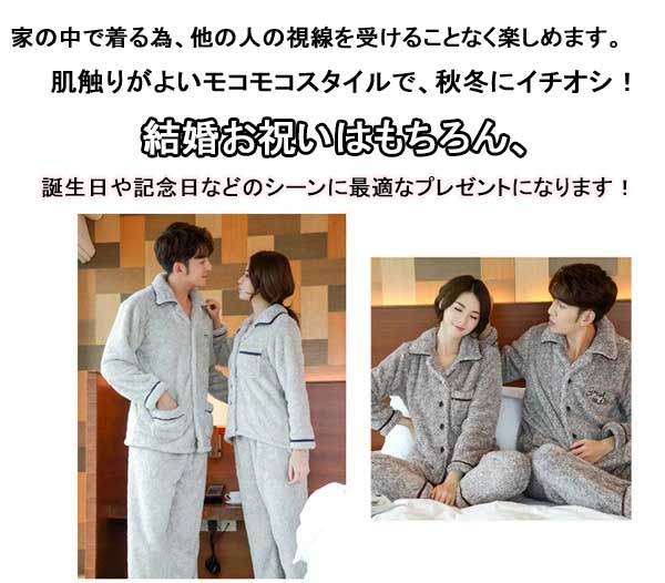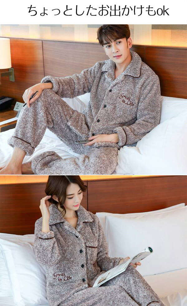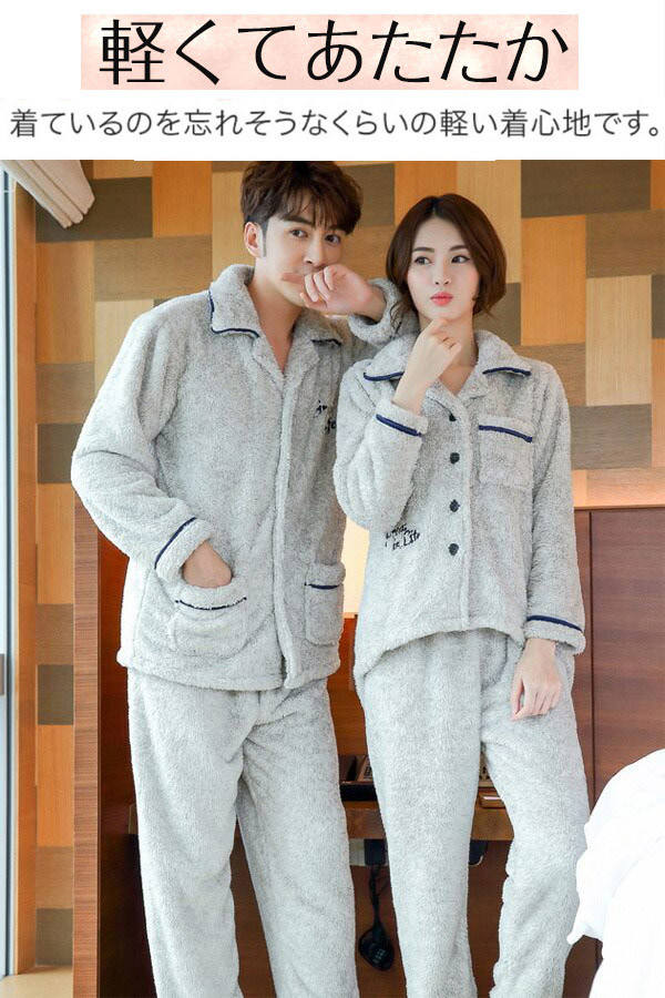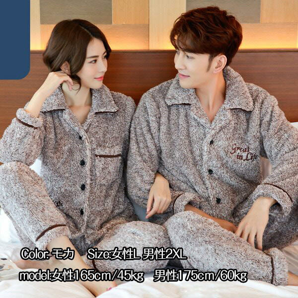 ペアパジャマ もこもこ ルームウェア インナー 下着 ナイトウエア 豊富な品揃え ライトグレー グレー モカ 女M 女L 女XL 女2XL 男L 男XL 男2XL 男3XL