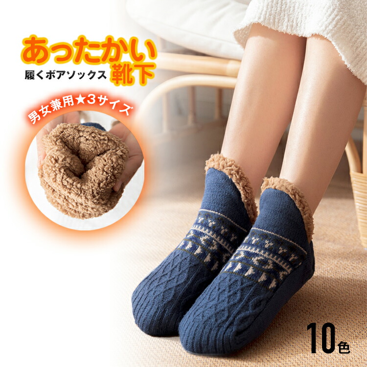 あったか靴下 男女兼用 保温 もこもこ ボア あったかソックス寒 秋冬 全10色 3サイズ 靴下 冷え防止 冷え対策 暖かい靴下 温かい靴下 くつ下 ソックス ニット ルームソックス