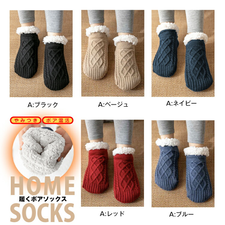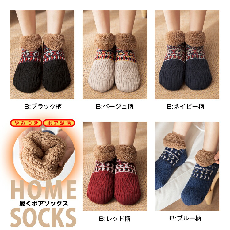 あったか靴下 男女兼用 保温 もこもこ レディース 靴下 レッグウェア 靴下 豊富な品揃え M:22.5-24.0 L:24.5-26.0 XL:26.5-27.5 A:ブラック A:ベージュ A:ネイビー A:レッド A:ブルー B:ブラック柄 B:ベージュ柄 B:ネイビー柄 B:レッド柄 B:ブルー柄