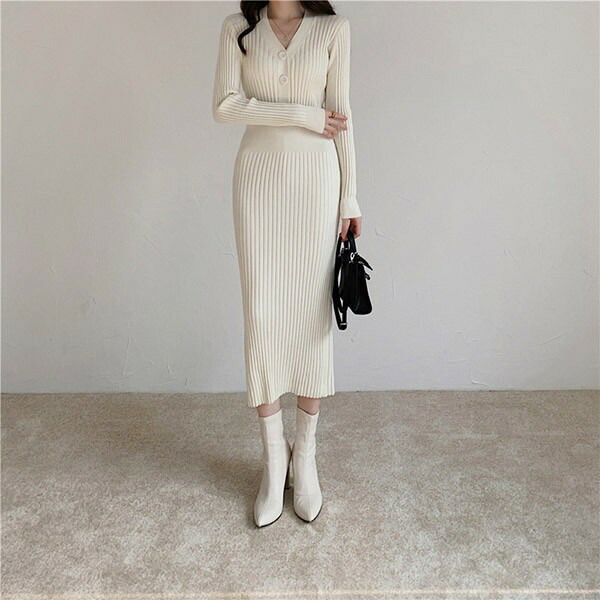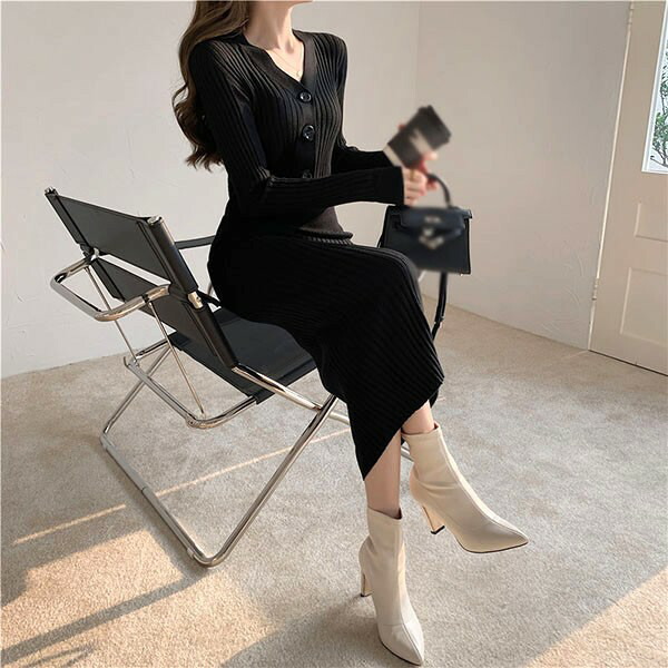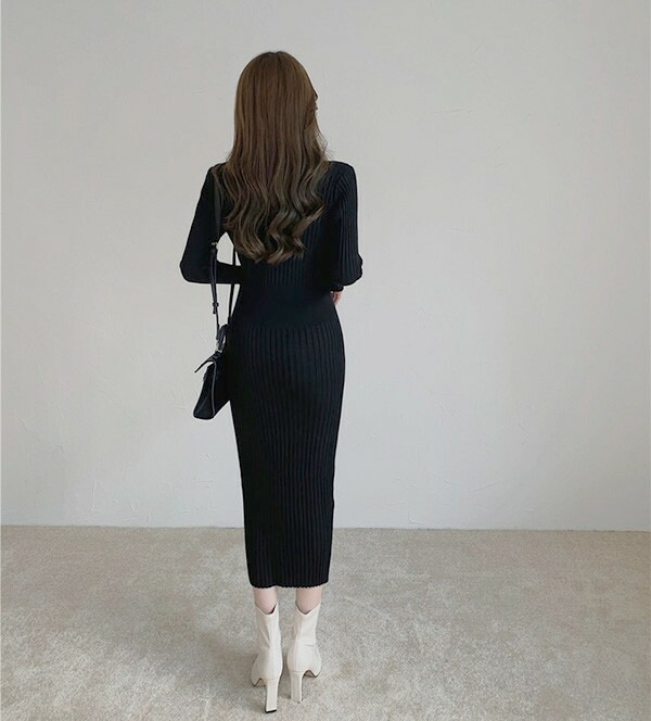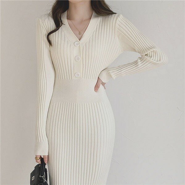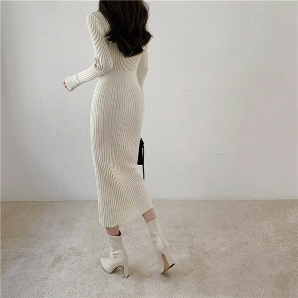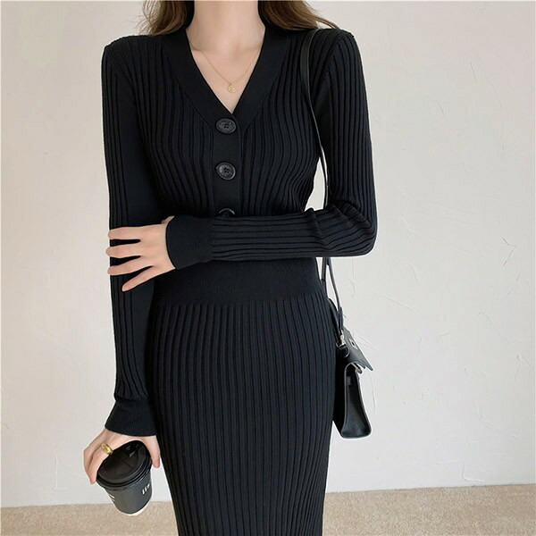 ニットワンピ タイト セクシー 長袖 レディースファッション 新登場! S M L XL ブラック ベージュ