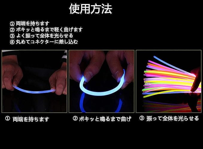 光る ブレスレット 光る首輪 光るリー 8色(100本セット) オレンジ(100本セット) 黄(100本セット) 緑(100本セット) ピンク(100本セット) 青(100本セット) 白(100本セット) 赤(100本セット) 紫(100本セット)