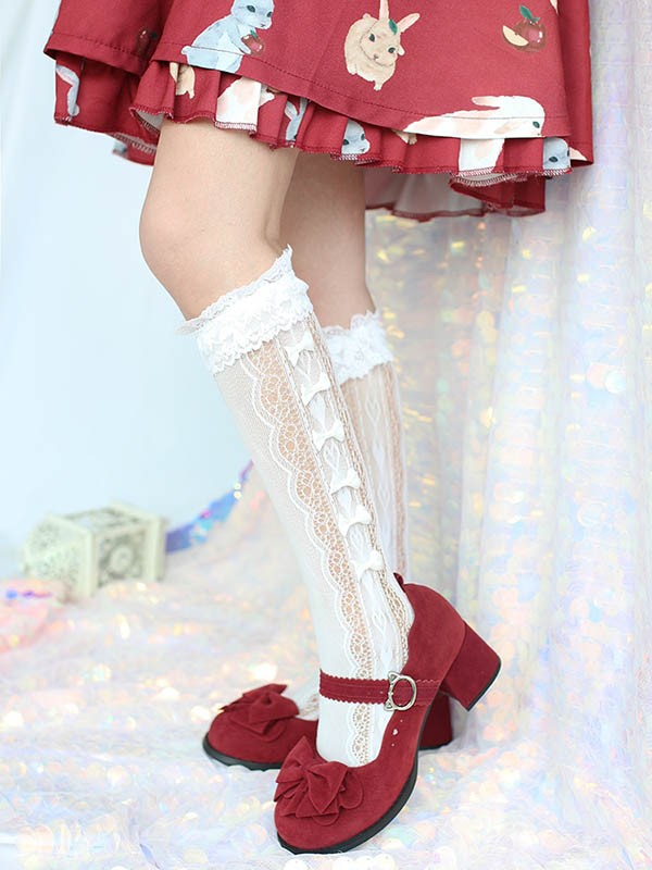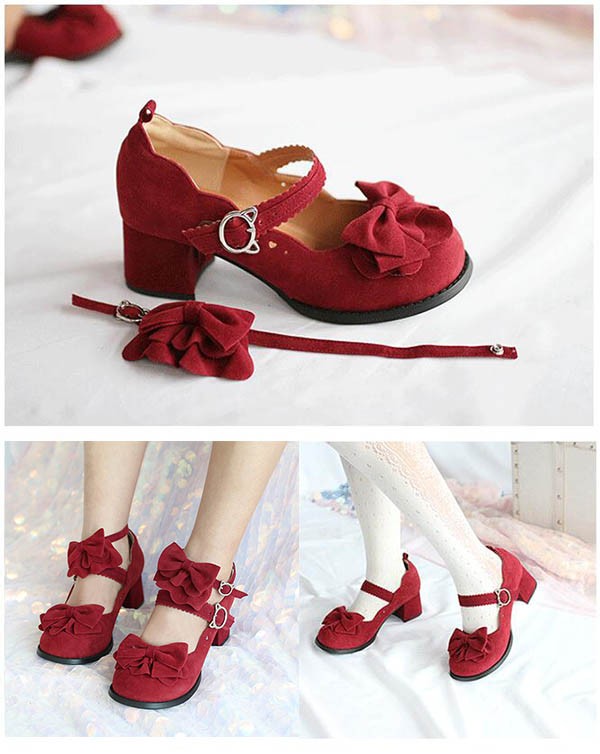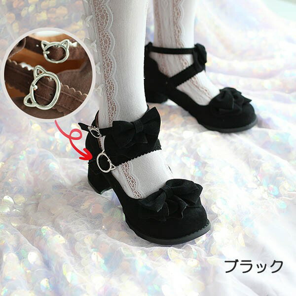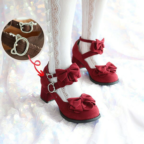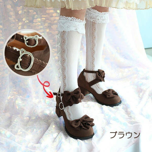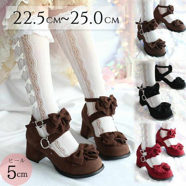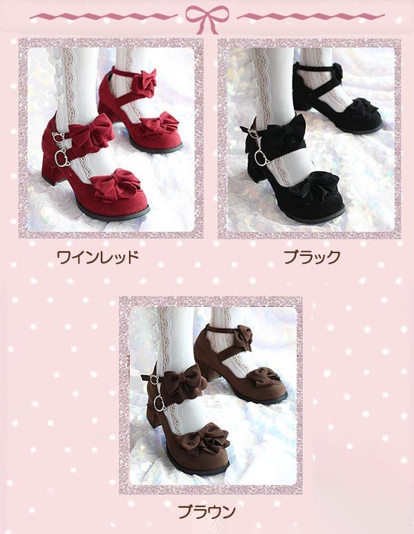 ロリィタ靴 フリルリボン スエード ヒ 靴 新登場! ワインレッド ブラック ブラウン 22.5 23.0 23.5 24.0 24.5 25.0