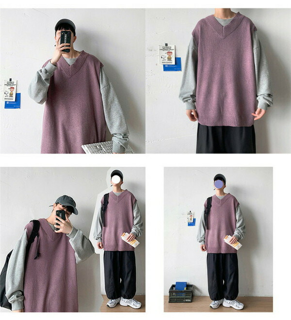 ニットベスト メンズニット 春 秋 ト トップス その他 続々入荷中 L M 2L(XL) 3L(2XL) 4L(3XL) ダークグレー パープル ブラック ブルー