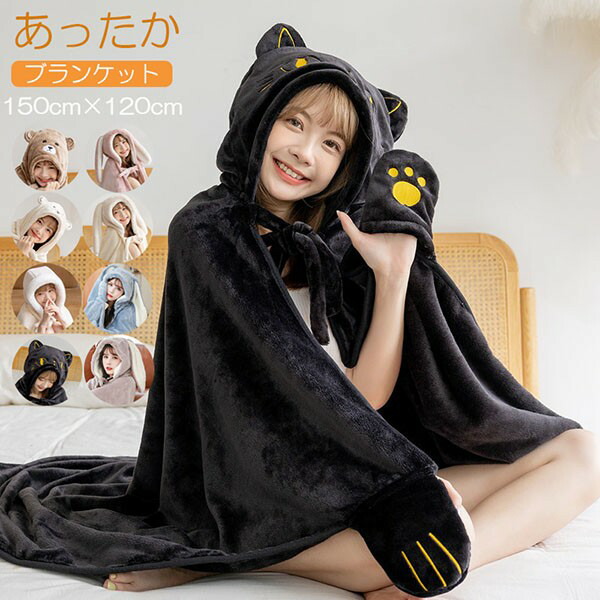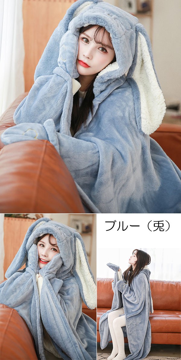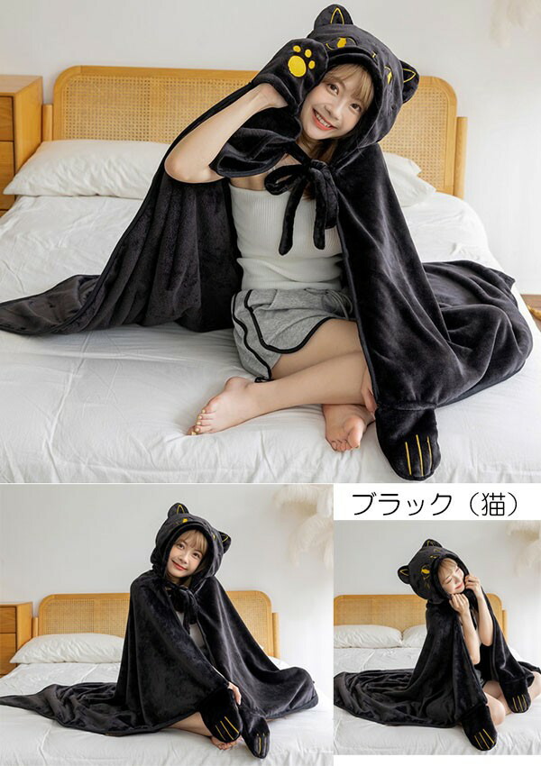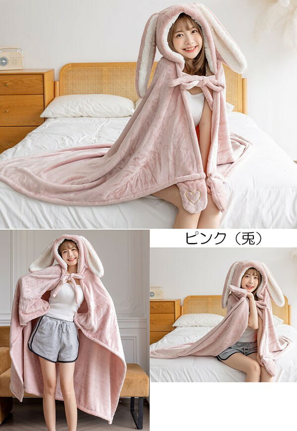 ブランケット マント 着る毛布 モコモ 寝具 毛布 ブランケット 豊富 ブラック(猫) ピンク(兎) ブルー(兎) 薄いパープル(兎) ベージュ(兎) ベージュ(ファー) ブラウン(クマ) ベージュ(クマ)