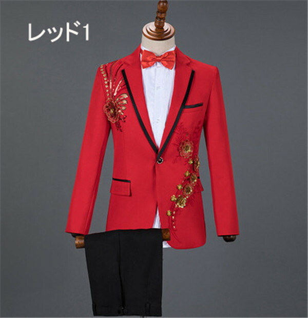 S~2XL 新作 演出 王子様 貴公子 大人 カラオケ 大会 演奏会 メンズ スーツ 赤 白 黒 ブルー 青 男性 スリムスーツ 大きいサイズ 舞台 衣装 ステージ 貴族服装 コスプレ クリスマ 演劇