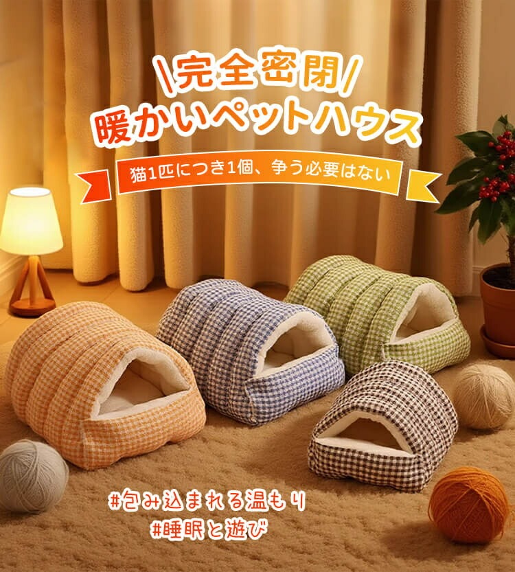 ペットベッド 猫 ペットハウス トンネ ペット ペットグッズ 新登場! ブルー グリーン オレンジ グレー M:約48*30*20cm L:約65*40*28cm