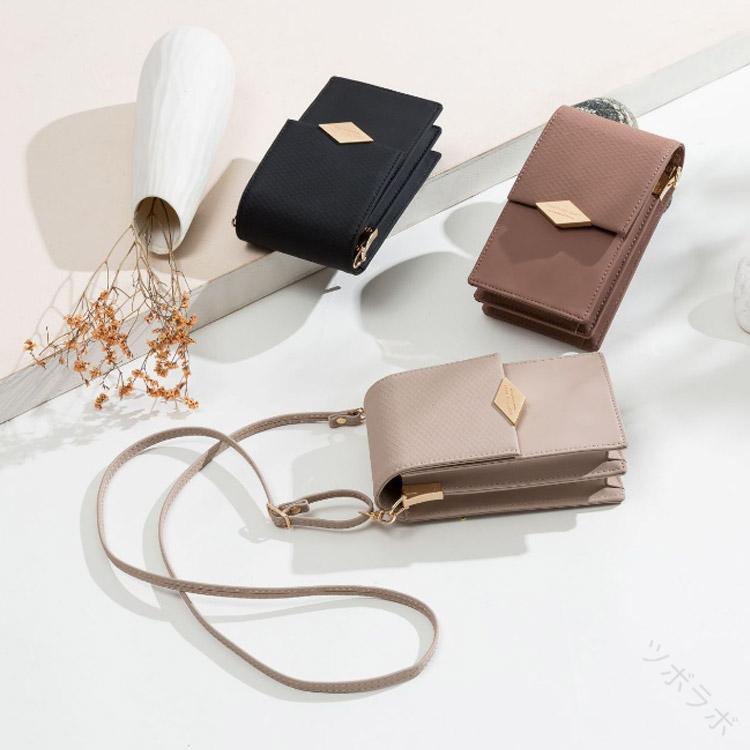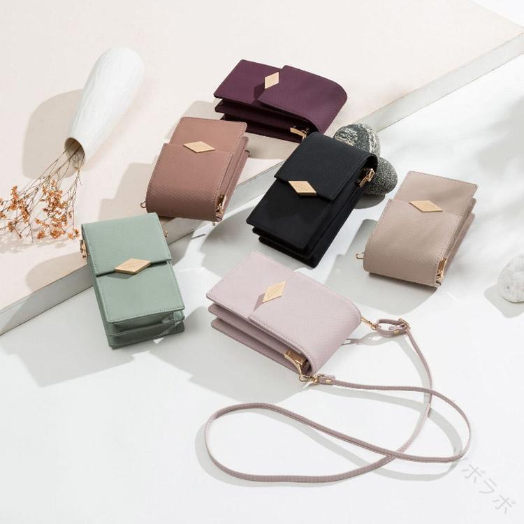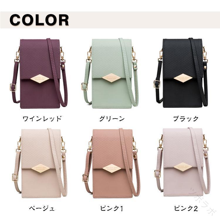 女性用大容量スマホポシェットレディース バッグ 小物 ブランド雑貨 人気 ワインレッド グリーン ブラック ベージュ ピンク1 ピンク2