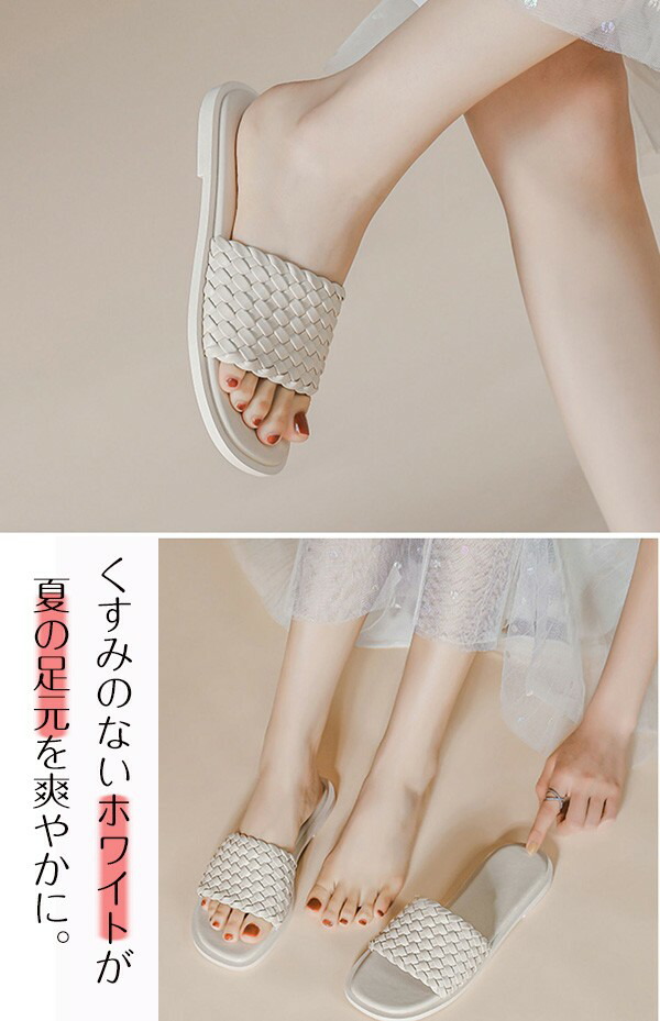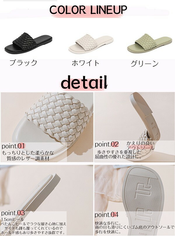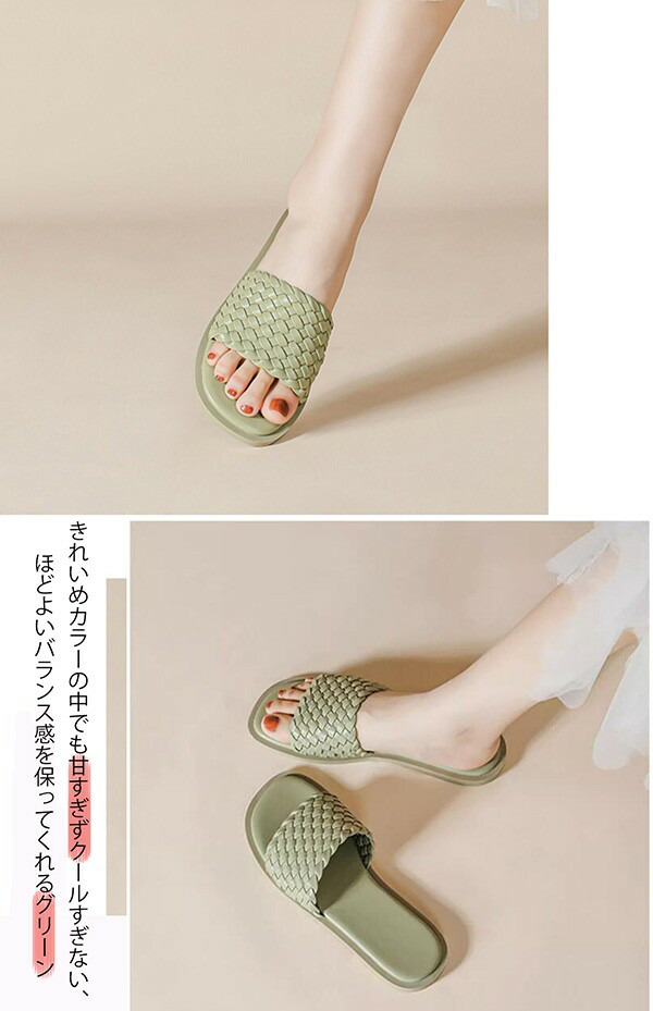 パデッドサンダル 編み込み ミュール 靴 通販 22.5 23.0 23.5 24.0 24.5 25.0 25.5 26.0 26.5 ブラック ホワイト グリーン