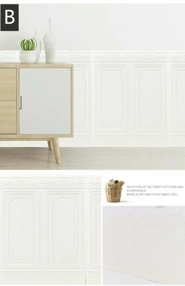 壁紙シール シート おしゃれ 洋風 北欧風 簡単 貼るだけ DIY 立体 リメイク アレンジ リフォーム ホワイト 白 クッションブリック 3D壁紙 玄関 入り口 リビング 寝室 キッ 90×70cm