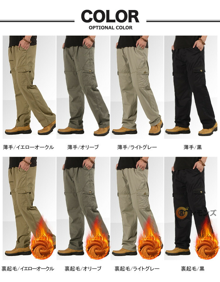 カーゴパンツ メンズ ミリタリーパンツ メンズファッション 早い者勝ち M L XL 2XL 3XL 4XL 5XL 6XL 薄手/イエローオークル 薄手/オリーブ 薄手/ライトグレー 薄手/黒 裏起毛/イエローオークル 裏起毛/オリーブ 裏起毛/ライトグレー 裏起毛/黒