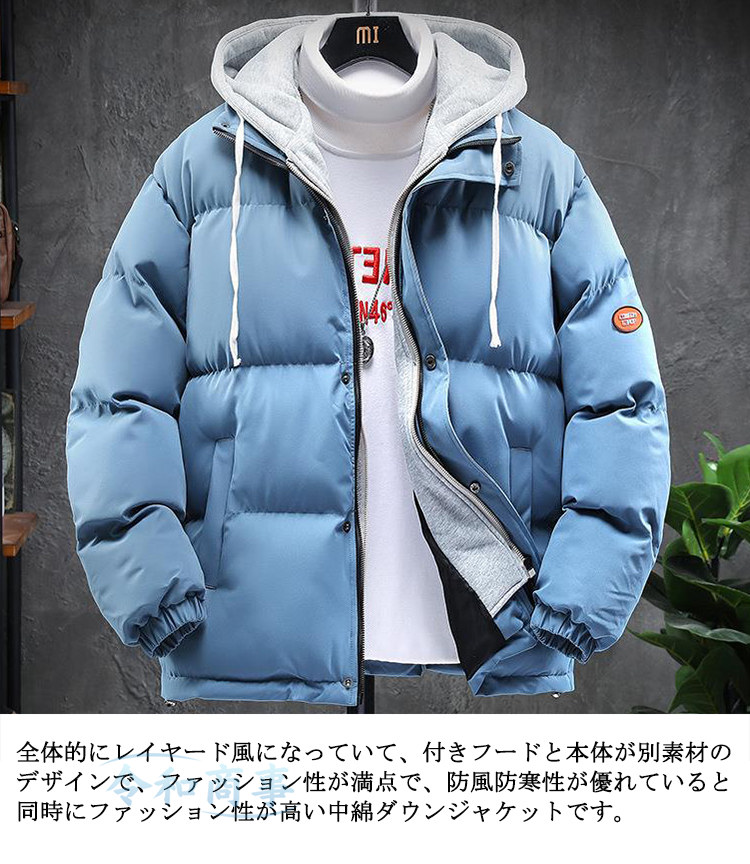 ダウンジャケット メンズ 重ね着風 中 メンズファッション 早い者勝ち M L XL 2XL 3XL 4XL 黒 ブルー