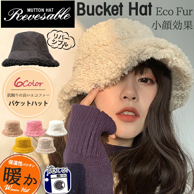 バケットハット リバーシブル ボア もこもこ 春秋 レディース 帽子 フェイクファー 厚手 暖かい 防寒 あったか ボリューム 折りたたみ おしゃれ かわいい 小顔効果 誕生日 ギフト プ クリスマス
