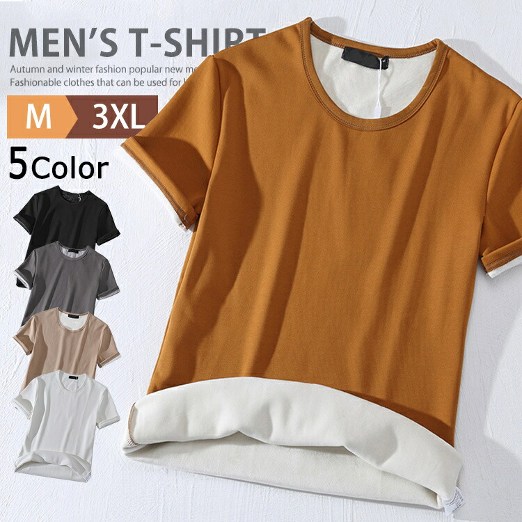半袖 シャツ メンズ 裏起毛 裏ボア クルーネック アンダーシャツ アンダーシャツ インナー