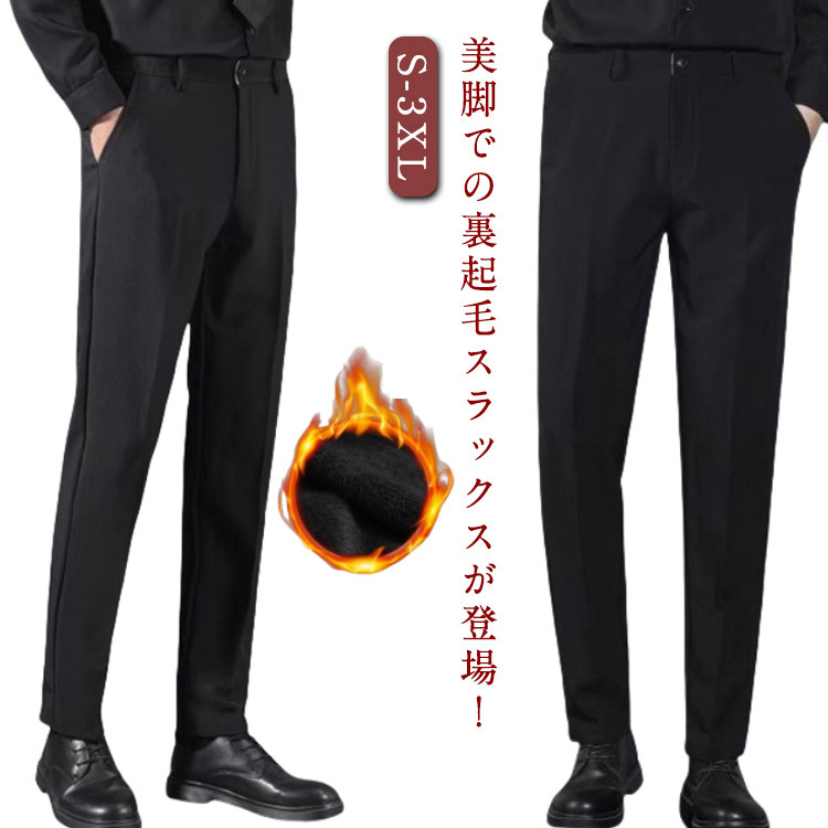 メンズスラックススリムパンツあったかパンツ薄手厚地大きいサイズスラックスビジネスパンツノーアイロンパンツ長ズボン秋冬パンツロングパンツ裏起毛防寒ズボン暖かいビジネスビジカジストレッチボトムス秋冬服おし