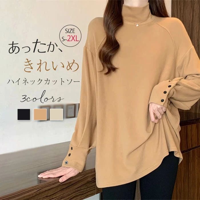 カットソー レディース 長袖tシャツ 秋冬 長袖 チュニック ハイネック Tシャツ プルオーバー 無地 インナー トップス 袖口シャツデザイン ゆったり カジュアル ベーシック お洒落 きれ シンプル