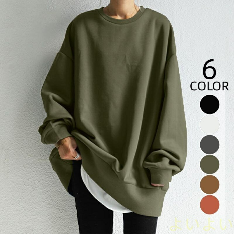 トレーナー レディース パーカー プルオーバー tシャツ 大きいサイズ ゆったり スウェット トップス 無地 体型カバー 春秋 長袖