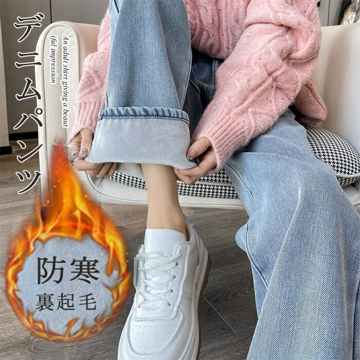 裏起毛 デニムパンツ ウエストレディース 秋冬服スリムに見せる秘訣 脚長効果 ふわふわ裏起毛 防寒 暖かいハイウエストストレートデニムパンツ ジーンズ 調整可で華奢見え お洒落レディース ズボ デニム
