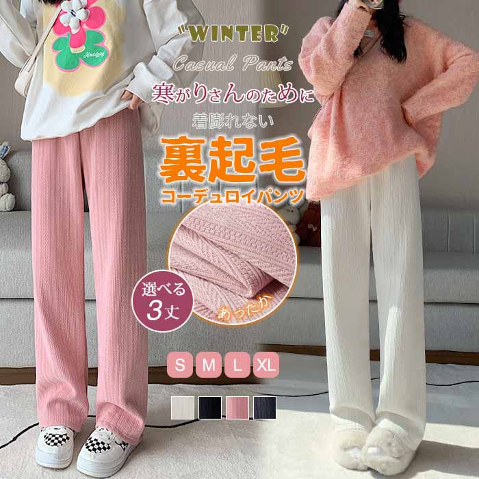 19%OFFクーポン 裏起毛 パンツ 裏ボア 極暖 コーデュロイ カーブパンツ コクーンパンツ ワイドパンツ ロング イージーパンツ ボトムス 冬秋 レディース 体型カバー リブ ストレート ズボン
