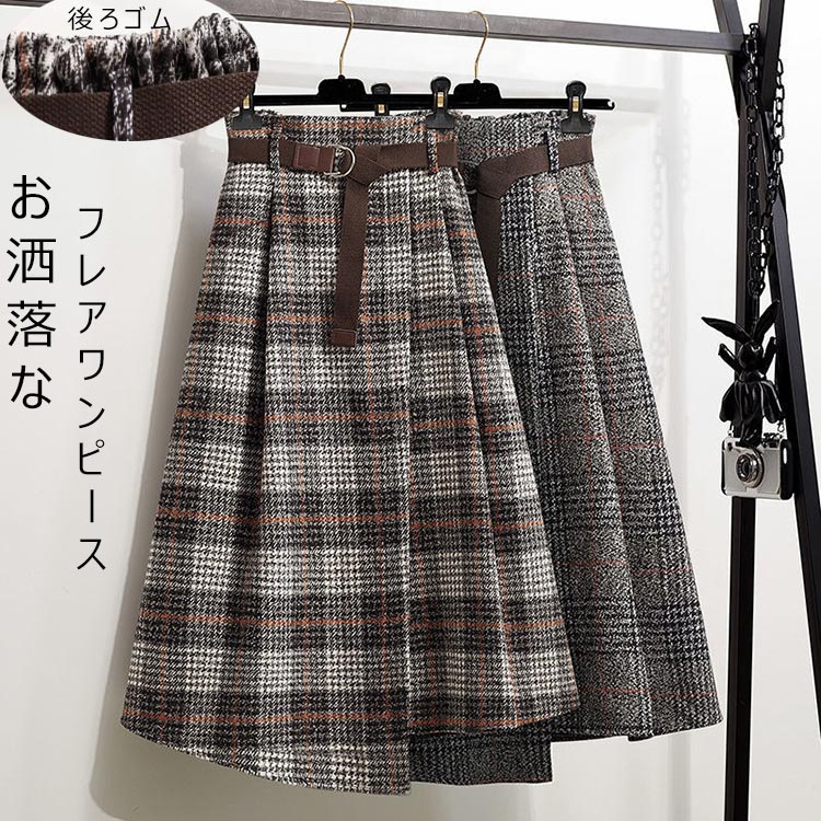 スカート ボトムス チェック ロング ロングスカート ハイウエスト レディース aライン Aラインスカート カジュアル エレガント シンプル おしゃれ 秋 レトロ お出かけ 着 冬