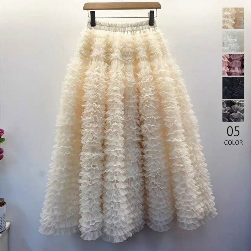 ボリュームチュールロングスカート スカート ボトムス レディース 秋 冬 チュールスカート ボリューム 大人 ロングスカート 秋冬 チュール 大きいサイズ ウエストゴム フレアスカー ロング