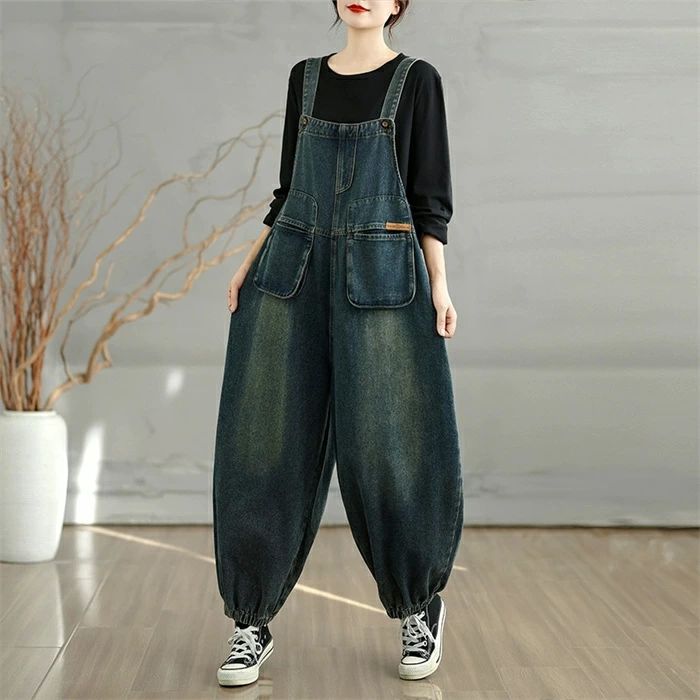 仕事に邪魔しないよう、くるぶしまで行く9分丈サロペット パンツ サロペットパンツ ボトムス サルエル オーバーオール 大きいサイズ サロペットパンツ 着こなせ 大きいサイズ