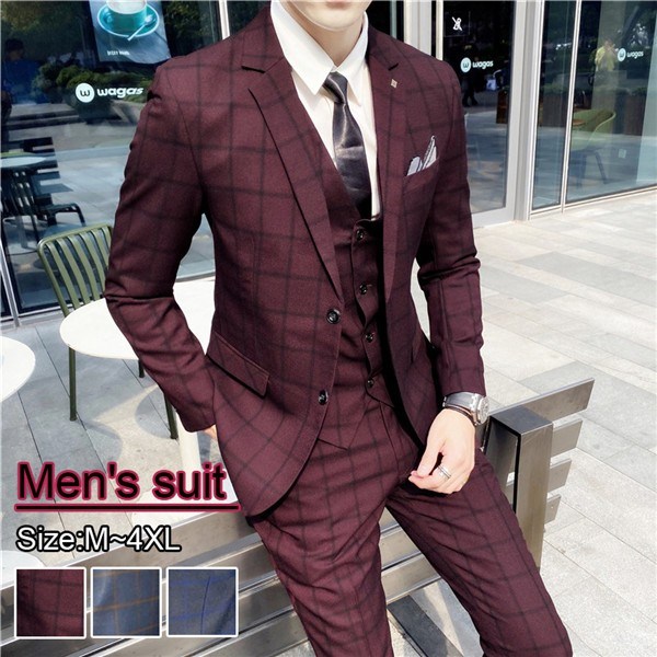 男性用 春夏 スリム 大きいスーツ 小さいスーツ グレー 赤 黒 メンズスーツ チェック柄 ビジネススーツ 2つボタン M L LL 3L 4L 5L メンズ MEN スーツ オシャレ 入社式 紳士
