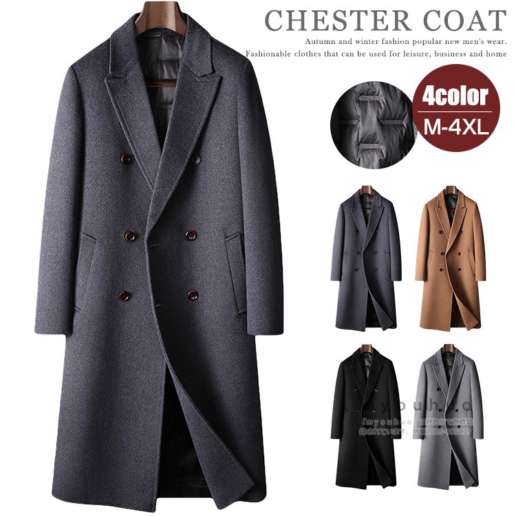 ロングコート ダウンライナー脱着可 チェスターコート メンズ ウールコート ビジネスコート ダブルブレスト 秋冬 コート 紳士服 細身 暖かい 防寒コート オフィス ロング丈 アウター 秋 カジュアル