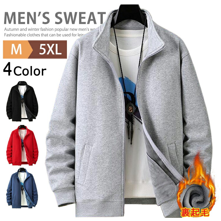 スウェット フルジップ ジャケット メンズ レディース 無地 厚手 薄手 裏ボア ハイネック トレーナー 秋冬