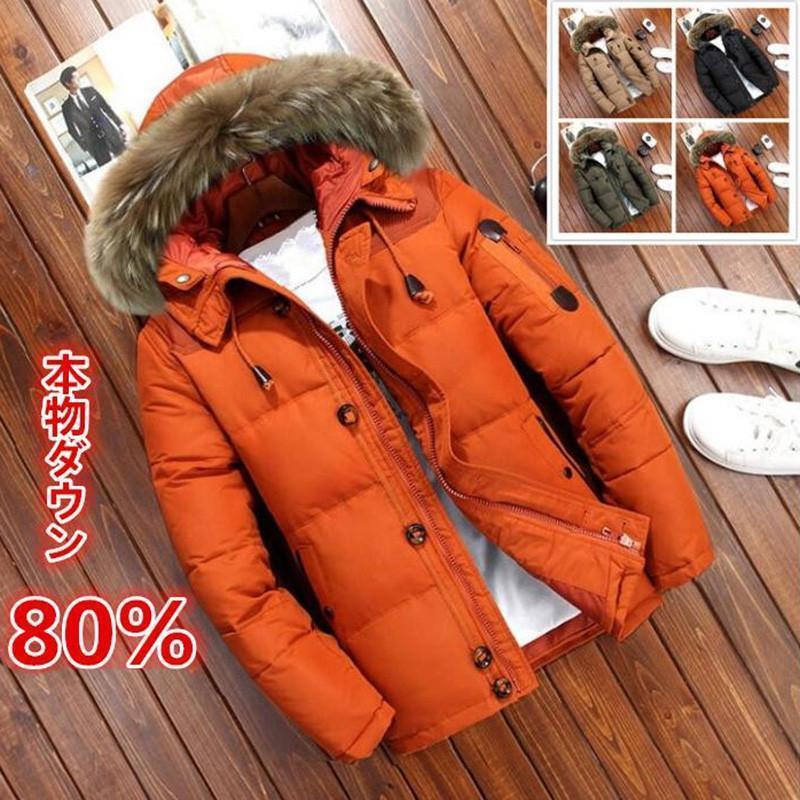 ト メンズ アウター フード付き80%ダウン本物 マウンテンパーカー カジュアル中綿 コート厚手アウトドア おしゃれ 冬 防寒スリム