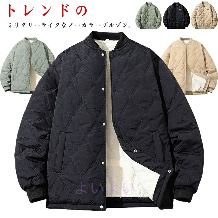 裏ボア キルティングジャケット メンズ 中綿ジャケット 裏起毛 ブルゾン あったか 防寒 中綿コート キルティングコート 暖かい ノーカラージャケット ライトアウター 保温 体型カバー ゆ ジャンパー