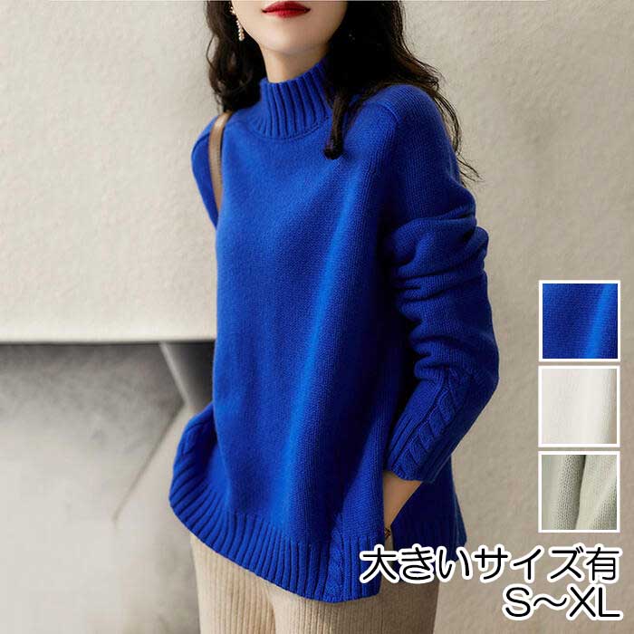 シンプル 無地 ゆったり セーター トップス 長袖 サイドライン タートル ニット レディース 秋冬新作 ニットハイネック