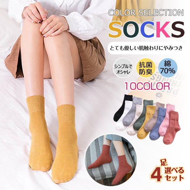 選べる4足セット 靴下 スニーカーソックス 1000円ポッキリ 福袋 2025 ハイ丈 レディース ストレッチ 伸縮性 リブ 綿 くつ下 くつした カラーソックス 無地 秋冬 春運動 抗 保暖