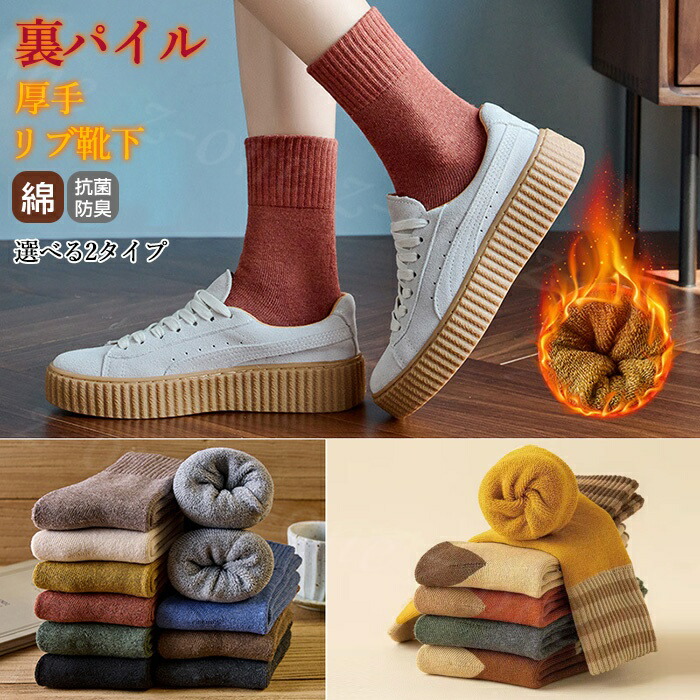 ソックス 靴下 美脚着圧 吸汗 抗菌 防臭 綿 伸縮性 裏パイル 厚手