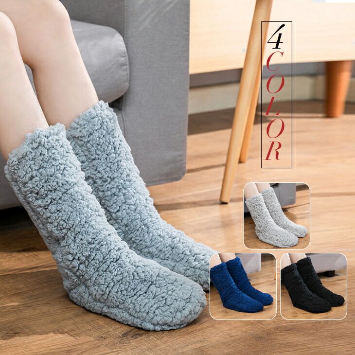 あったか靴下 ルームシューズ ルームソックス もこもこ ボア 保温 防寒 秋冬 シンプル 無地 ロング すべり止め付き ソックス レディース ジュニア おうち時間 ふわふわ もふもふ 靴下
