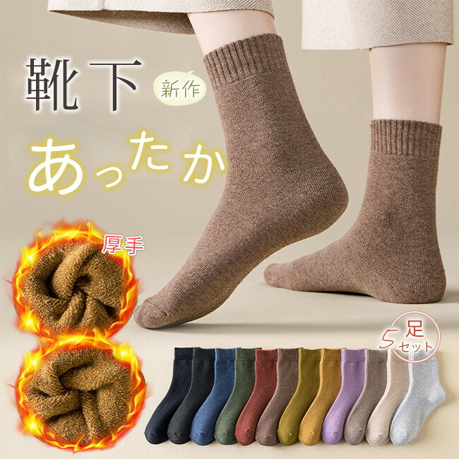高評価 】靴下 レディース 冬用 暖かい ウール混 5足セット 北欧柄 もこもこ ソックス 厚手 防寒 冷え取り くるぶし丈 カラフル おしゃれ ルームソックス 冬靴下 冷え性対策 ス 22-26cm