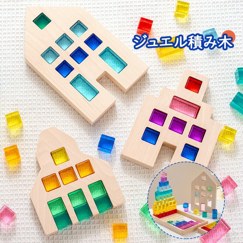 ジュエル積み木 パズル 知育玩具 カラフル おもちゃ 子供 知育 キッズ 宝石のような積木 アクリルキューブ 透明クリア色彩教育 クリスマスプレゼント 誕生日プレゼント 人気の学習玩 積み木