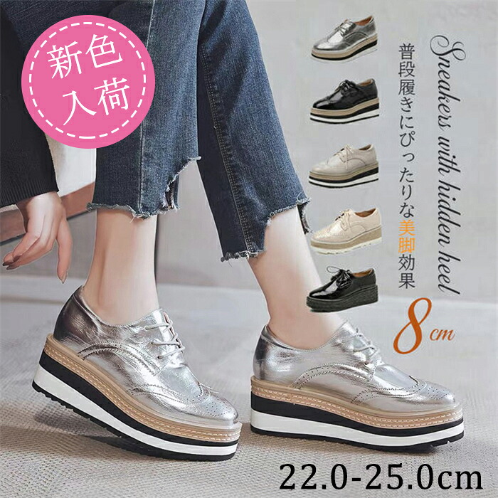 厚底 ローファー ヒールスニーカー 8cm レディース 厚底ローファー インヒールスニーカー 女の子 普段履き 美脚 中学生 通学 靴 シルバースニーカ 厚底スニーカー