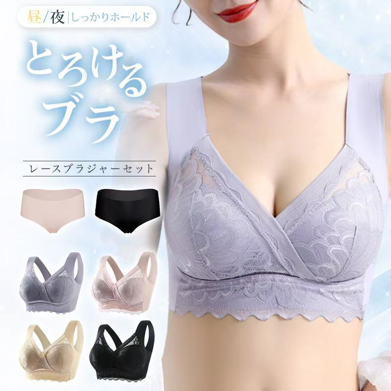 ナイトブラ レース仕様 昼夜兼用 ノンワイヤーブラセット ショーツセット 30代 40代 20代 ノンワイヤー 美胸 育乳 大きいサイズ 夜用ブラ ブラジャー 夜ブラ レース 寝る時ブラ