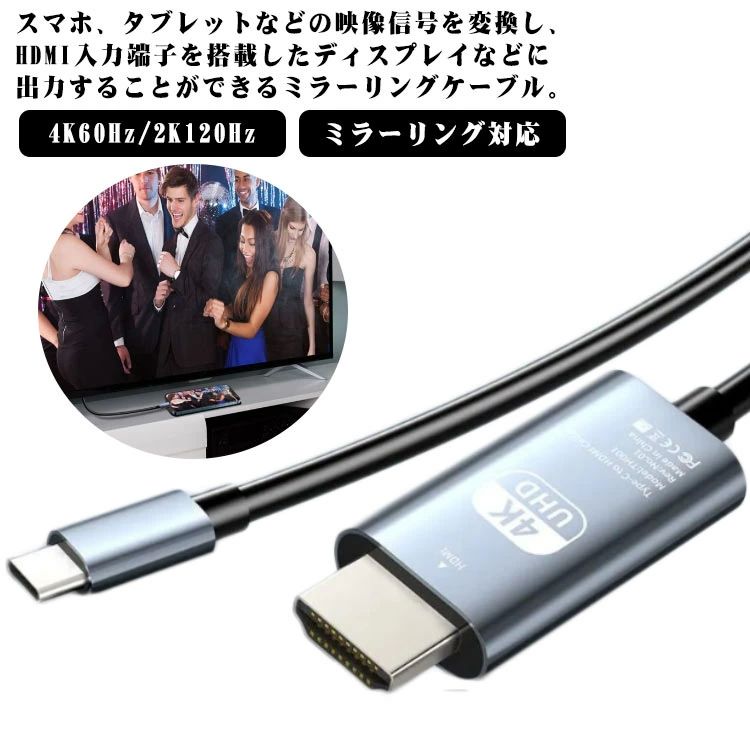 映像変換ケーブル 映像 HDMIミラーキャスト HDMI ミラーリング対応 スマホ 4K60Hz 2K120Hz タブレットの映像をテレビに出力可能