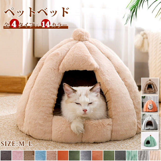 大人気全4タイプMサイズ Lサイズペットハウス 猫 ドーム型ペットベッド 秋冬用洗えるカボチャ半密閉式もこもこクッション付きペット用品新作 小型犬用ハウス