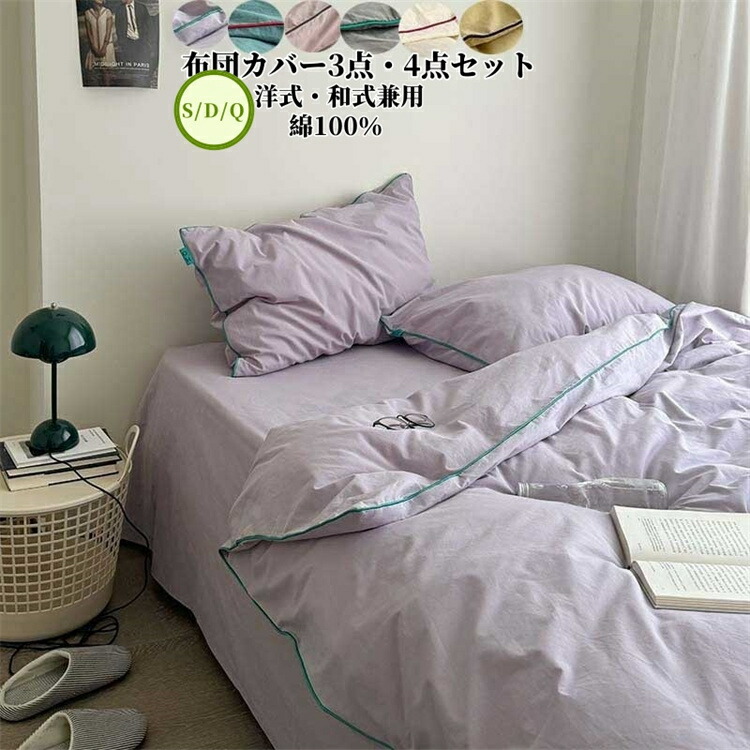布団カバー セット 4点セット フラットシーツ ボックスシーツ 3点セット 寝具カバー シングル ダブル バイカラー かわいい おしゃれ 風 布団カバーセット 丸洗い 掛け布団カバー