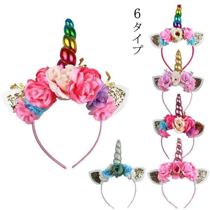 アクサセリー ユニコーンカチューシャ ヘアバンド ヘッドバンド キッズ 子供 フラワー リボン 仮装 カチューム ヘアアクセ ツノ ヘアアクセサリー プレゼント ハロウィン 衣装 コス ギフト
