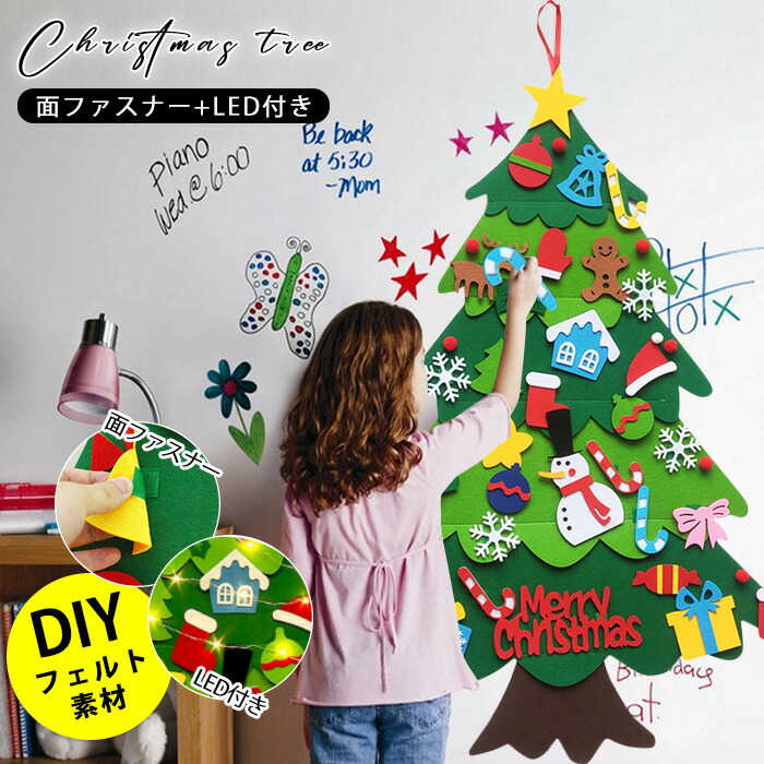 何度も貼り付けることができるフェルトタペストリー、子供が大好き!クリスマスツリー並みのタペストリーとしてきれいに飾れます!さらにライト付き。