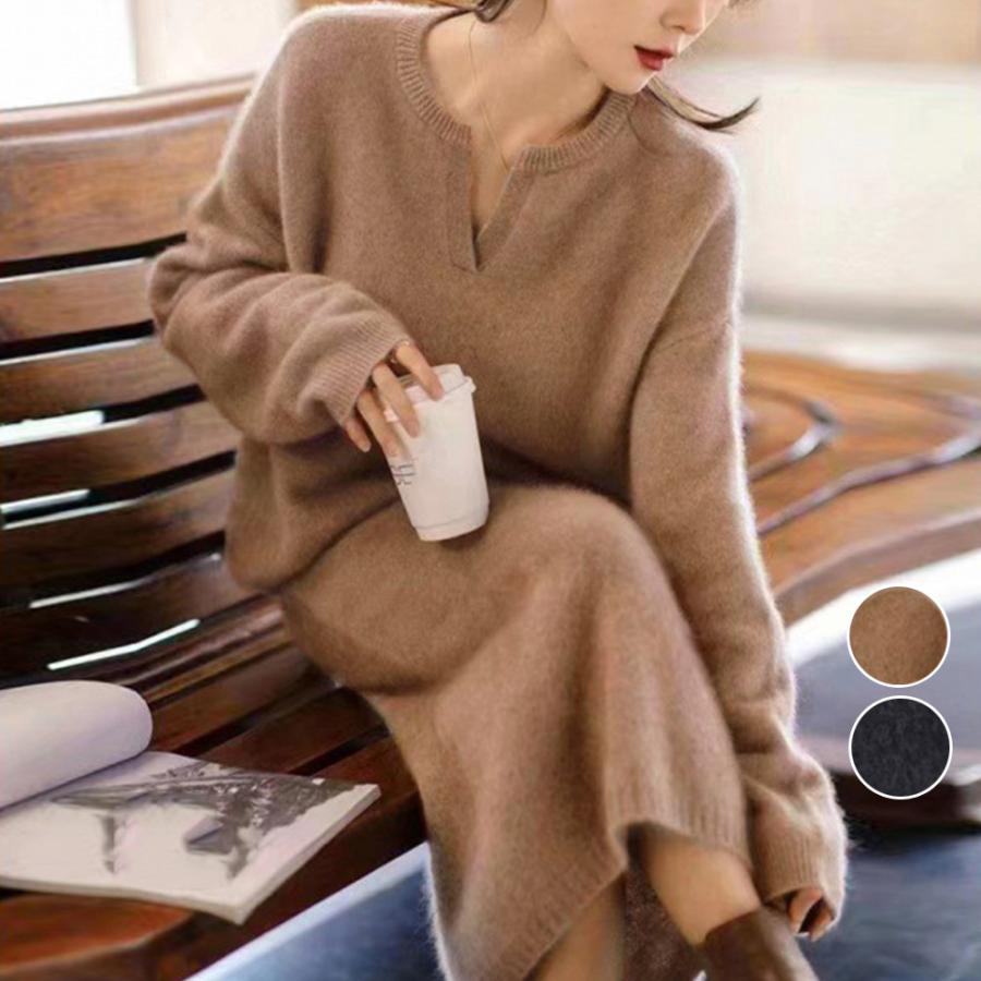 ニットセットアップ レディース セーター きれいめ ニットセーター 40代 秋冬 ニットスカート スカート 長袖 ニット セットアップ 無地 ロング丈 上品 韓国風 カジ オシャレ