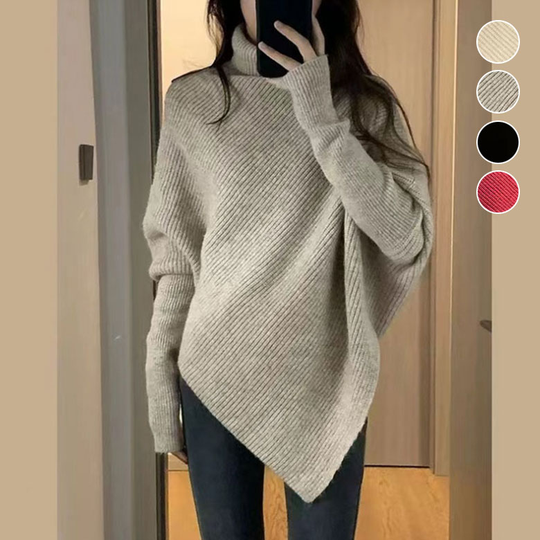 3B32 タートルネック ニット セーター レディース ハイネック 秋 冬 ニットセーター 長袖ニット トップス 長袖トップス 不規則デザイン お洒落 防寒 暖かい カジュアル タートルネックセ 保温