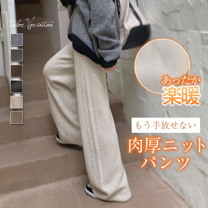 暖かくて着心地抜群の リブニットパンツ! 着膨れしないセミワイドシルエットで防寒しながら綺麗見せ 20代 30代 40代 50代 送料無料 ♪
